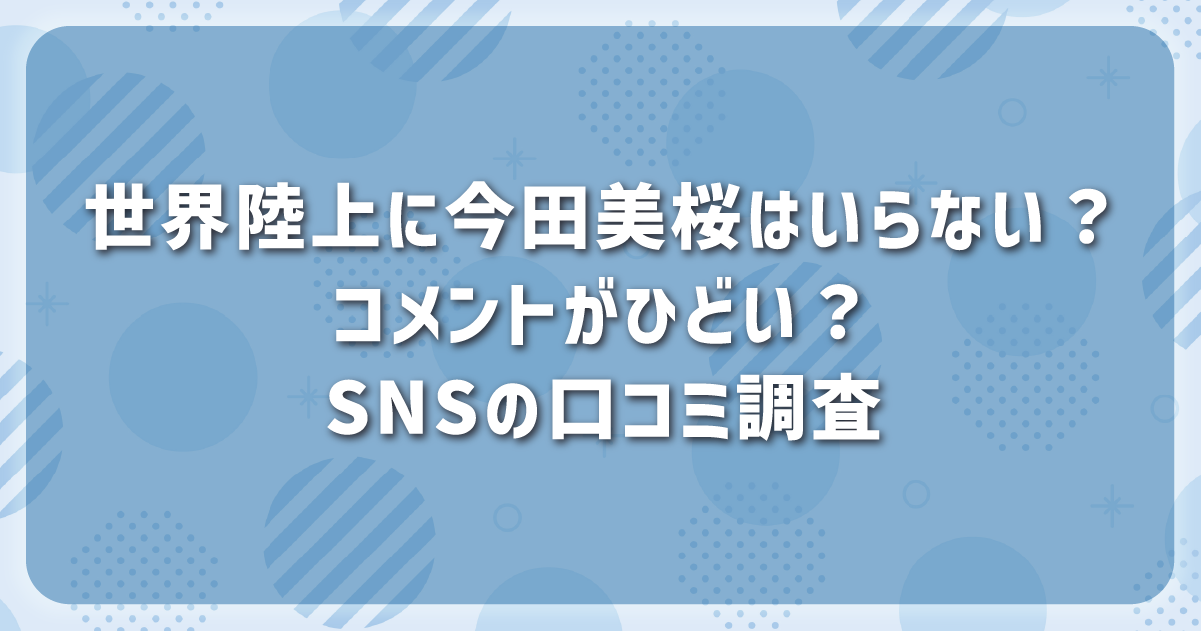 この記事では、世界陸上に今田美桜はいらない?コメントがひどい?SNSの口コミ調査をまとめます。